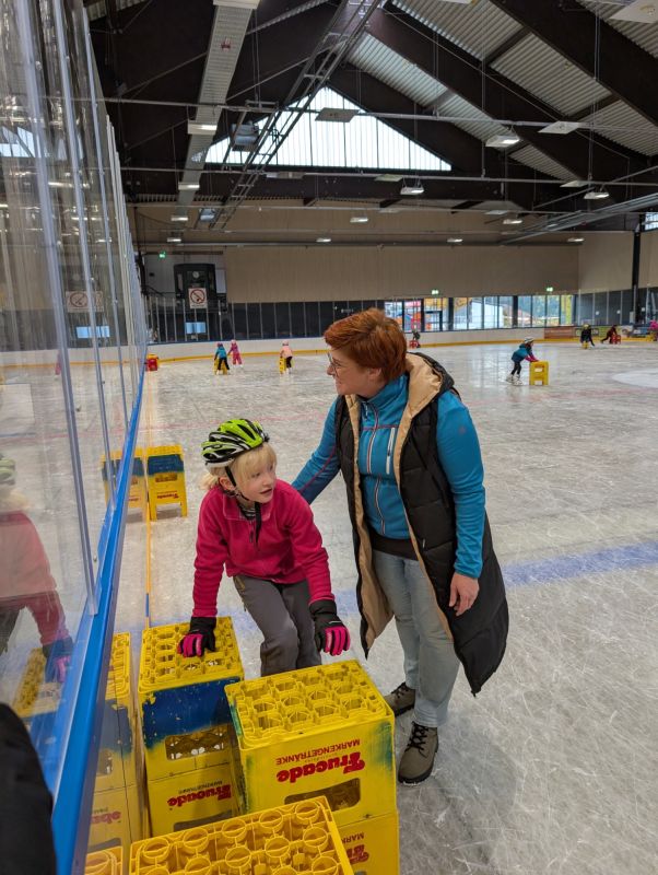 In der neu renovierten Halle hatten die Kinder riesen Spaß beim Eislaufen. Alle Schüler können heuer schon alleine über die Eisfläche gleiten. Es ist schön, die Fortschritte zu beobachten.