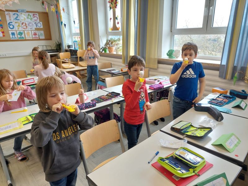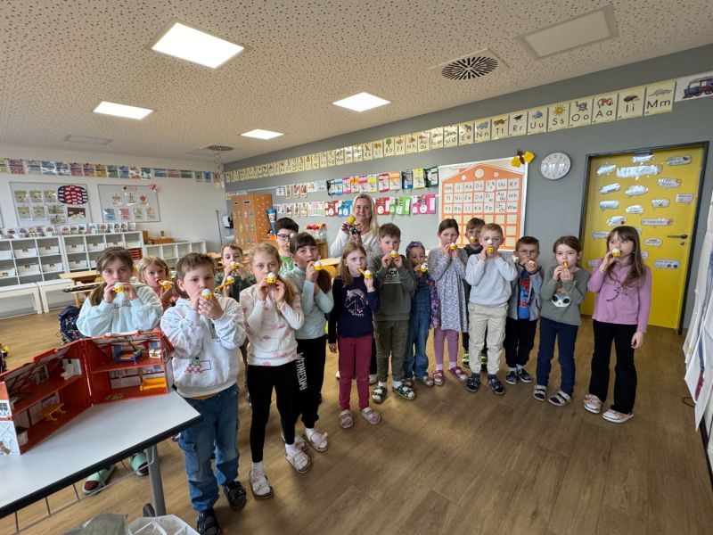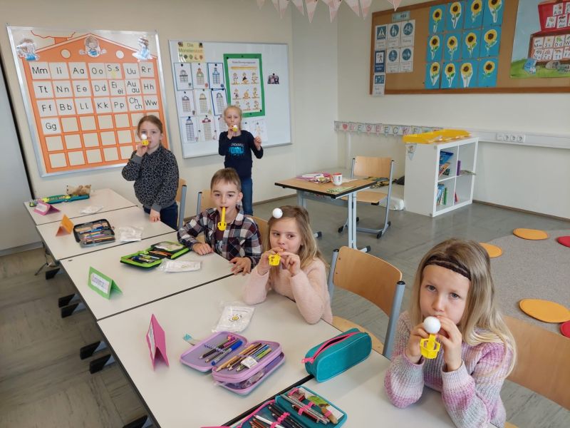 Mit Klaro, der Identifikationsfigur des Programms, erforschten die Schüler zu Beginn den Zusammenhang zwischen Atmung und Bewegung, entdeckten den Weg der Atmung im Körper und erlernten die Klaro Atmung. Nach lustigen Bewegungsspielen brachte Frau Krenner auch noch einen Atemtrainer als Geschenk mit und überreichte Materialien zur Herstellung eines eigenen Klaros bzw. einer Klara.