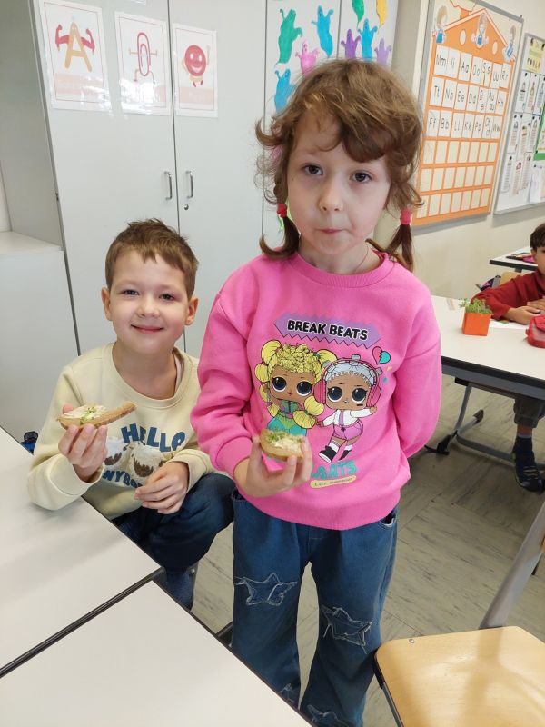 Der Höhepunkt folgte beim gemeinsamen gesunden Frühstück. Die frisch geerntete Kresse wurde auf Butterbroten probiert. Stolz und mit großem Appetit genossen die Kinder ihre selbst gezogene Ernte – ein leckeres Ergebnis ihres Upcycling-Projekts!