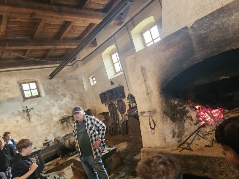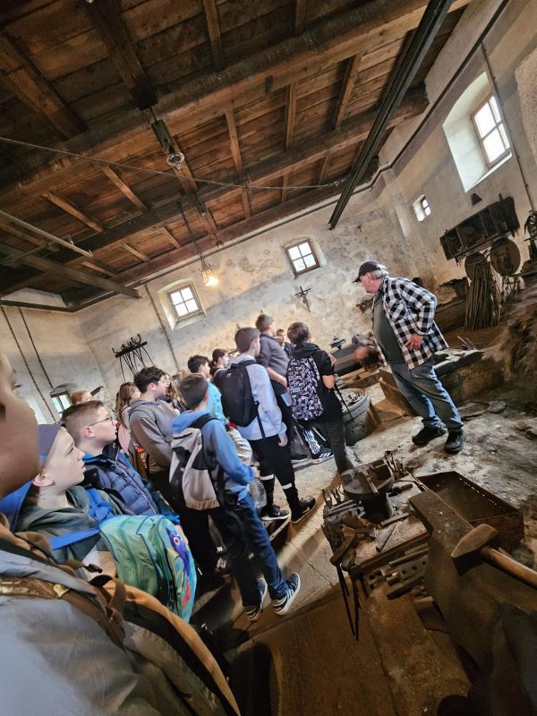 In Obernzell besuchten die Schülerinnen und Schüler die 550 Jahre alte Hammerschmiede Pöppel, wo sie das Hammerwerk und den Schmiedeofen besichtigen konnten. Sie erfuhren, wie die Schmiede früher funktionierte und wie die Schmiedeprodukte hergestellt wurden. Die Schülerinnen und Schüler waren beeindruckt von der alten Technik und der handwerklichen Kunst.