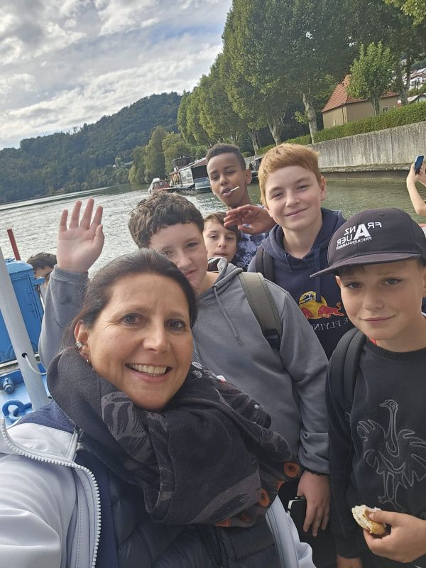 Ein Highlight des Tages war das Übersetzen mit der Donaufähre „Hafnerzell“. Die Schülerinnen und Schüler genossen die Fahrt über die Donau und die Aussicht auf die umliegende Landschaft.
